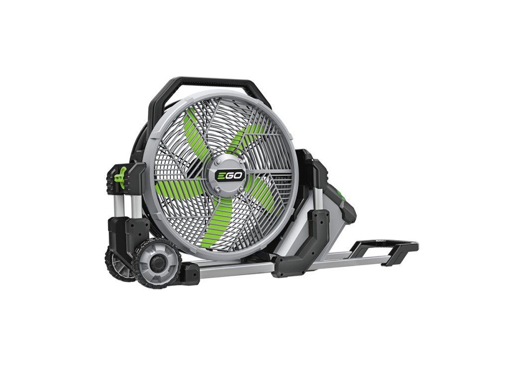 Ventilátor má průměr 45 cm a vzhledem k jeho hmotnosti 10,4kg je zabudován do transportního dvoukolového podvozku s teleskopickou rukojetí. Lze si zvolit rychlost vzduchu z 5-ti možností plus funkce "turbo". Ve středu ventilátoru se nachází 4 vodní trysky, do kterých v případě nutnosti podává vodu integrované vodní čerpadlo. Vytváří se tak vodní mlhovina, jejíž intenzitu zle řídit kromě rychlosti ventilátoru i dvěma režimy výkonu vodního čerpadla. Vytvoříte si tak optimální prostředí. Maximální průtok vzduchu ventilátorem je 7.000 m3/hod. při max. rychlosti vzduchu 10,3 m/s. Jen pro představu, velikost horkovzdušného balónu pro pilota se 4 pasažéry je cca 3.000 m3. To znamená, že tímto ventilátorem byste naplnili za hodinu minimálně 2 takto velké horkovzdušné balóny. Slušný objem, že? A jak dlouho vydrží baterie? Samozřejmě záleží na kapacitě baterie, ale s baterií EGO 5Ah vydží ventilátor v režimu 1 běžet až 60 hodin nepřetržitě.
