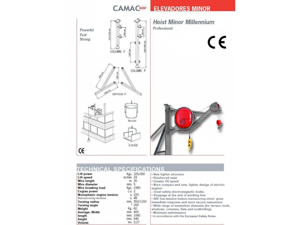 Stavební vrátek s nosností 325 Kg a výškou zdvihu 30 m.