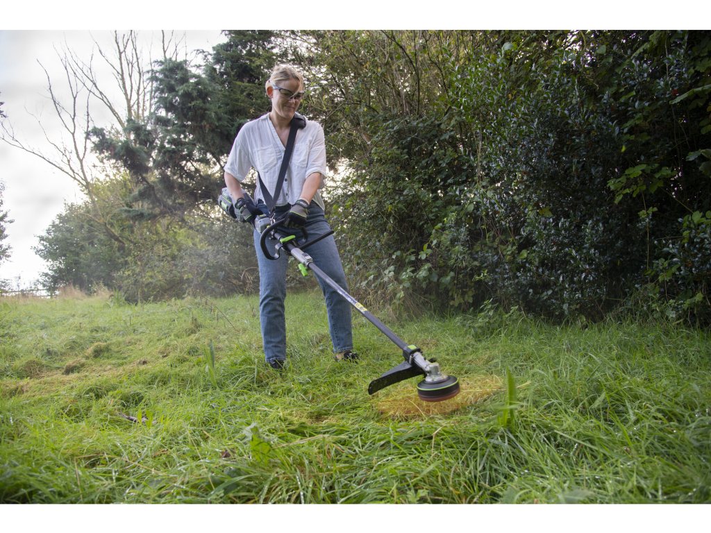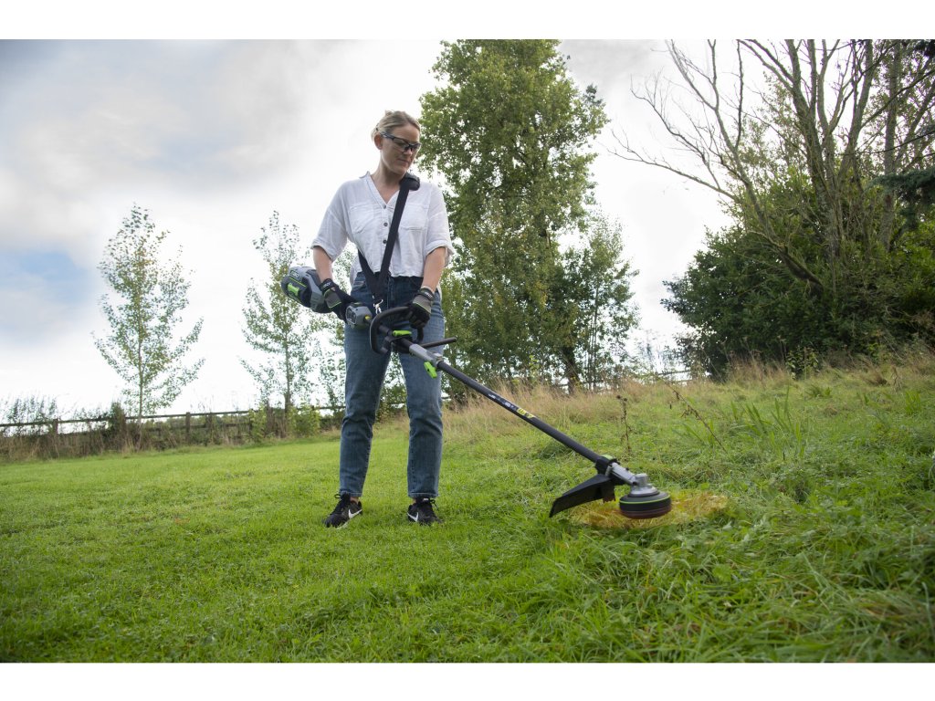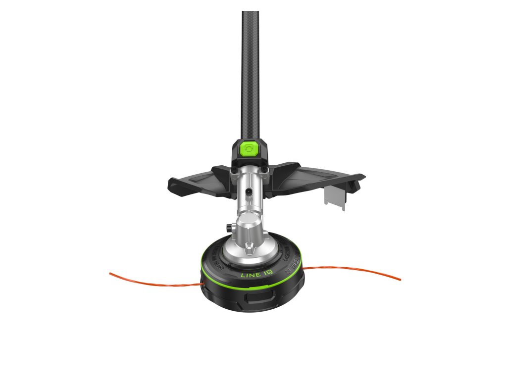 Žací nástavec se strunovou hlavnou typu "Line IQ". Automatická strunová hlava zajišťuje optimální dávkování žací struny dle míry její opotřebení zcela automaticky. Při práci se struna zkracuje ubroušením a občas je nutné ji povysunout na pracovní délku. Technologie EGO "Line IQ" za Vás zvládne i tuto činnost. Nylonová žací struna o ∅ 2,4mm namotaná na cívce plně automatické strunové hlavy "Line IQ" se při práci v případě potřeby automaticky ubroušenou strunu prodlouží bez jakéhokoliv zásahu uživatele. Díky "Line IQ" odpadá tak již tradiční poklep strunovou hlavou o zem a sekací rameno žací struny je zcela automaticky nepřetržitě udržováno na svém pracovním záběru 430mm.