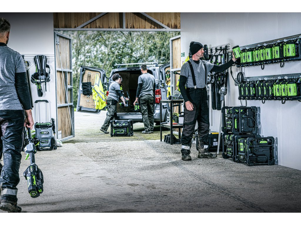 Pro rychlé nabíjení několika systémových baterií EGO Power+ 56V Arc současně slouží dílenský, PRO-X nabíjecí systém. Celý systém je stavebnicí, skládající se z nástěnné PRO-X supernabíječky PGX1600E-H a libovolného počtu nástenných nabíjecích adaptérů, PGX3000D pro 3 baterie EGO každý, popř. přenosná nabíjecí powerbanka PGX1400PB.