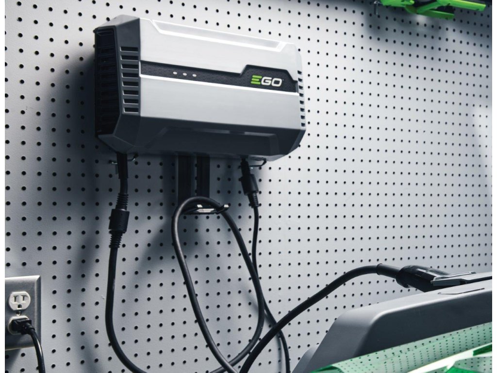 Pro rychlé nabíjení až 6 baterií EGO současně je nutné použít inteligentní supernabíječky EGO CHV1600E. Rychlonabíječka je opatřena závěsem na stěnu a nabíjecím kabelem s příslušným konektorem. Nabíječka je opatřena řídící elektronikou, která naprosto samostatně vyhodnotí stav baterií a automaticky zvolí režim nabíjení, dobu nabíjení a nabíjecí proud. Stav baterie a aktuální stav nabití je indikován LED diodami na panelu. Nabíječka je tak plně automatická bez jakéhokoliv nutného zásahu ze strany uživatele. Výsledkem je, že čas potřebný k nabití např. šesti baterií s kapacitou 10Ah každá, je cca 3 hodiny. Takže při střídání dvou sad baterií mnohdy pokryjete výkon potřebný pro celodenní práci.