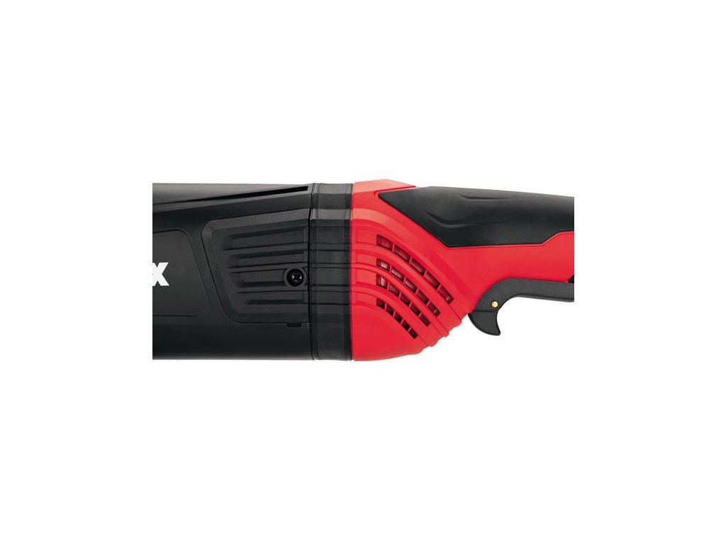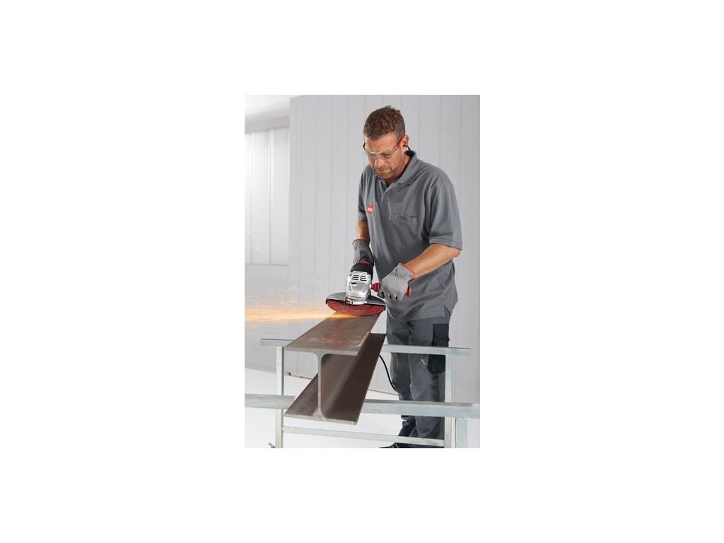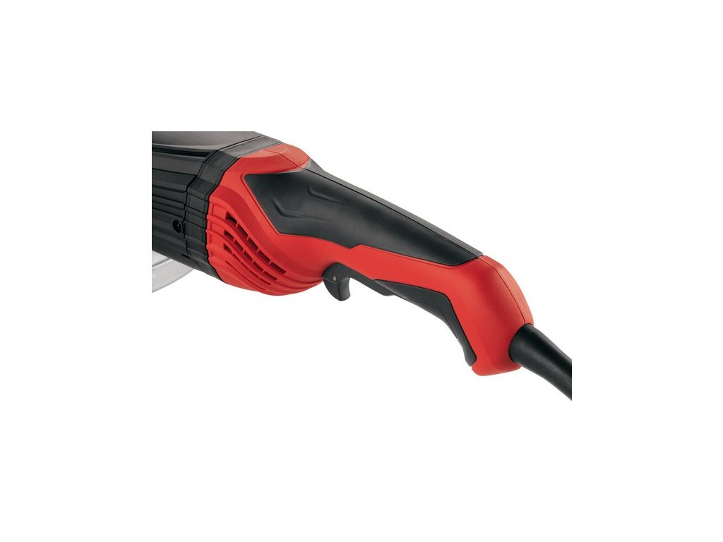 Úhlová bruska 2100W, 230mm, obouručná. Robustní kryt motoru i převodovky. Stabilní a robustní ocelový převod, uložení hřídele chráněno kovovým krytem, zvyšující spolehlivost a životnost Štíhlé tělo motoru pro optimální vedení a manipulaci. Tlumení vibrací díky antivibrační vložce mezi krytem motoru a zadním držadlem SoftVib - rukojeť redukující vibrace, montovatelná ve třech polohách Zadní rukojeť s měkkou vložkou pro bezpečné uchopení Spínač: s blokováním zapnutí a aretací Ochrana proti opětovnému spuštění po výpadku proudu Omezení rozběhového proudu: pro bezpečné spouštění bez přetížení elektrické sítě Aretace vřetene Možnost přenastavení ochranného krytu bez použití nástroje Ochranný kryt pro řezání, příslušenství (obj.č. 389.625) Základní vybavení: 1 ochranný kryt broušení Ø230 1 rukojeť SoftVib 1 klíč pro matice s čelními otvory BL 5 1 upínací příruba 1 upínací matice M 14.